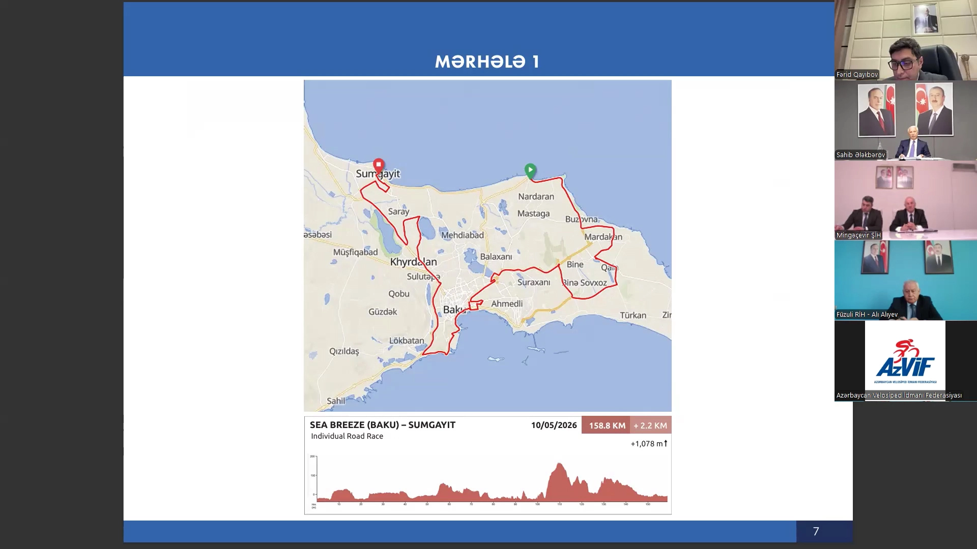 Sahib Alakbarov, the Chairman of the Race Organizing Committee, Deputy Minister of Economy, and First Vice-President of the Azerbaijan Cycling Federation, delivered a detailed presentation. He stated that preparations for the race are proceeding in accordance with the approved Action Plan. It is expected that 25 high-level teams from 21 countries around the world will participate in the five-stage race. The race participants will start from Sea Breeze in Baku and, over the course of 5 days, will cover a distance of 850 km while passing through the territories of 21 cities and districts of our country. They will finish in the central square of Khankendi city, in front of the Victory Monument.